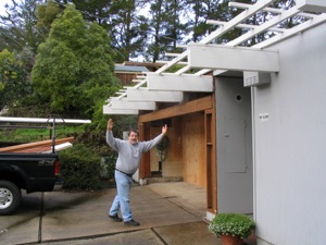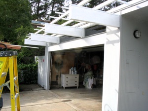 Steel beam replacement of sagging and rotted garage door header and new garage door at an “Eichler” designed house in Sunnyvale CA