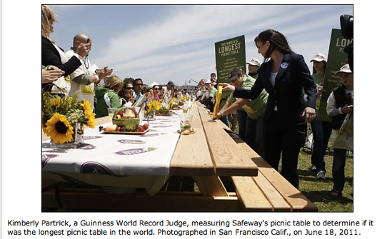 Guiness Book World Record for the “Longest Picnic Table”.