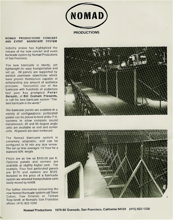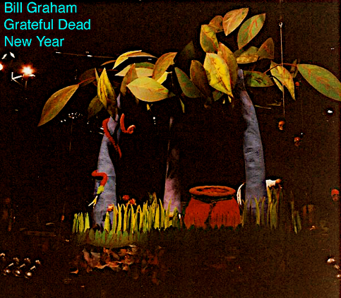 Bill Graham himself descended from the ceiling of the Oakland Coliseum at midnight dressed as a headhunter on this magic island (it was in the late 80’s) Designed by Eleanor Hockabout, and built at Nomad Productions, I designed the structure of all the elements of the island. Note the aluminum door screen “clouds” under the island
