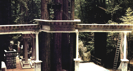 The stage designer for the Bohemian Club asked us to build the set and design the rigging for a set for their yearly production of “the Low Jinks” at the Bohemian Grove. Creating headers that spanned 40’ and could rig to redwood trees without damaging them was a challenge