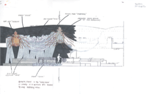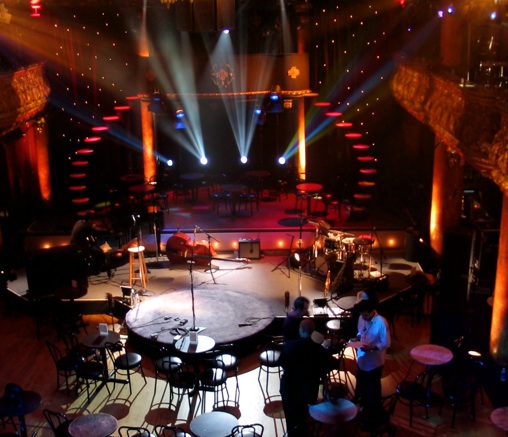 Challenge: Create extended stage setting, include audience on stage, recreate the look of the venue from the 20’s of twin stairs from balcony.