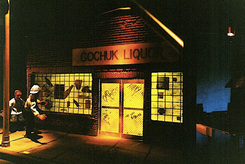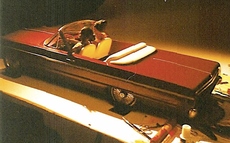 Part of a street scene and a 30” long model of a ’64 Chevy designed and built for a